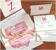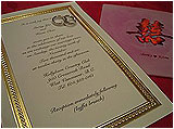 The cards are usually made of art sheet or any other decorative material. A striking feature of Hindu Marriage Invitations is that usually the cards have a religious sign embossed on them. The sign may be of Lord Ganesha, or the religious symbol ‘Om’ or a pot with mango leaves. All of these symbolize a good Omen and a harmonious beginning. Marriage Invitations of the Bengalis also have a butterfly, a symbol of marriage itself. Another popular symbol is that of a baraat, a marriage entourage. Another good omen that is seen on the invitations is the mark of turmeric and vermilion (haldi and kumkum) with some grains of rice fixed upon it.